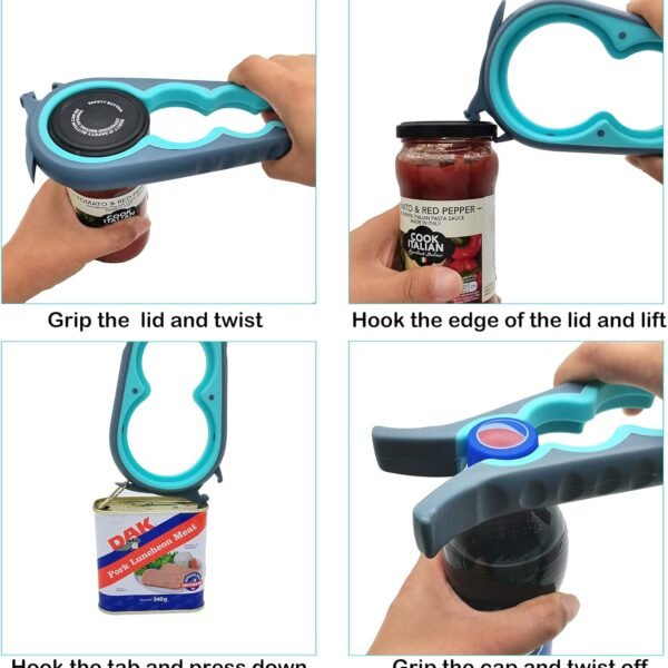 Jar Opener Bottle Opener and Can Opener for Weak hands, Seniors with Arthritis and Anyone with Low Strength, Mutil Jar Opener Get Lids Off Easily (Blue and Grey)